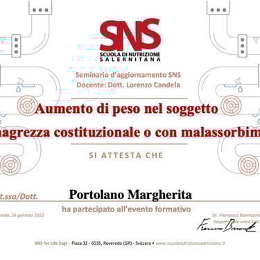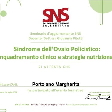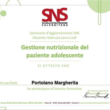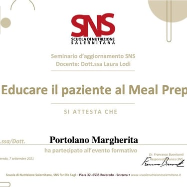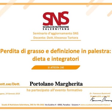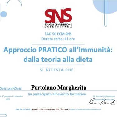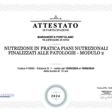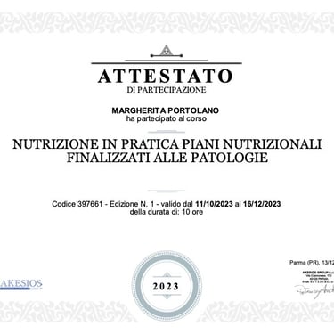 Sono la Dott.ssa Margherita Portolano, biologa nutrizionista con una lunga esperienza nel campo della nutrizione clinica e dello stile di vita sano. Lavoro a Firenze, dove seguo quotidianamente uomini e donne con esigenze diverse, aiutandoli a sviluppare abitudini alimentari sostenibili e a migliorare il proprio benessere generale.
